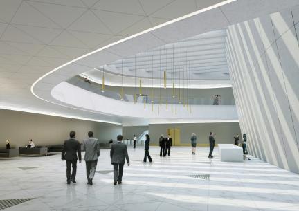 Rising from the bank of the Tigris River, the Central Bank of Iraq building, conveys the core values of the institution: Solidity, Stability and Sustainability.