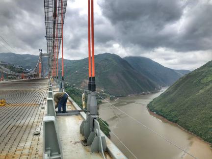 The Honghe Suspension Bridge between Honghe Hani and Yi Autonomous Prefecture in Yunnan Province, South of China was completed within 35 days.