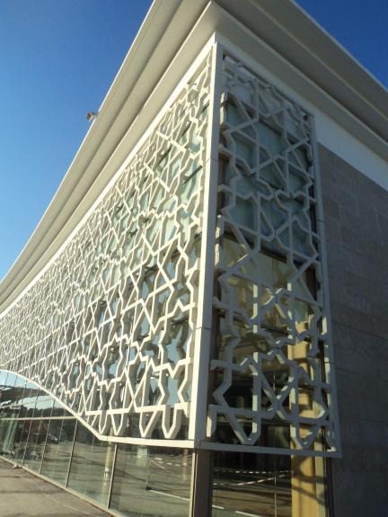 The National Airports Office of Morocco assigned architect Zhor Jaidi Bensouda from Klarte International studio the refurbishment of Rabat-Salé airport, including the design of a 1 600sqm mashrabiya facade. It is both an envelope and a brise soleil, based on a traditional and cultural pattern : the Morrocan star.
