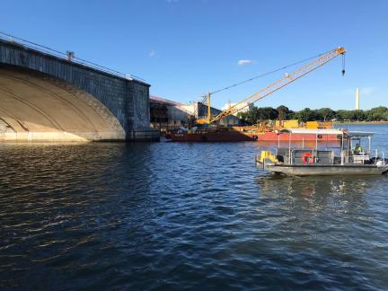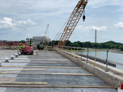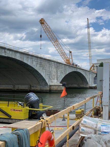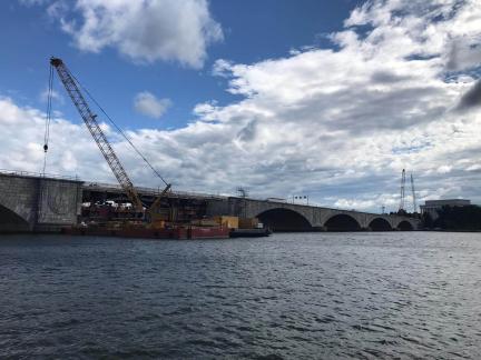 The Arlington Memorial Bridge is located in Washington DC which carries traffic over the Potomac River. The original structure used masonic decorative features which gives this bridge an iconic look.