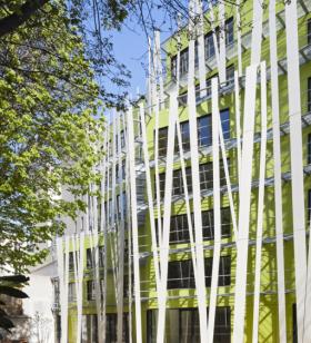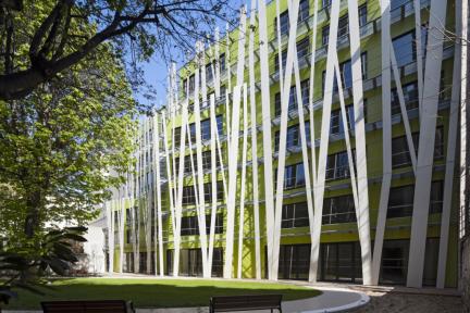 The watertightness Ductal® Envelope made possible the design of an impermeable wavy façade with effective exterior insulation using a panel sandwich system. The mineral texture of Ductal® fits perfectly with the plant-like appearance that the architect desired.