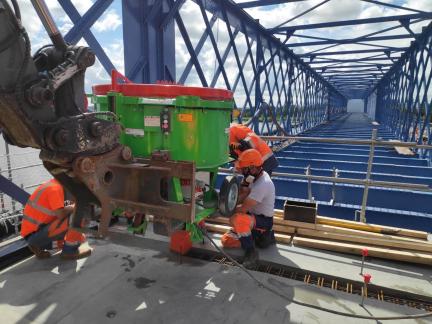 The rehabilitation of Mauves-sur-Loire bridge consists in substituting the existing deck (3,500 m²) made of brick vaults with a thin deck made of thin precast UHPFRC slabs. The main objective of the project is to upgrade this historic landmark by increasing its bearing capacity and allowing the addition of cantilevered footbridges.