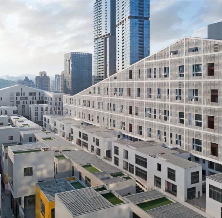 The Shum Yip UpperHills Loft, a Urbanus project, is a high-end commercial complex with 6 high-rise towers containing offices, hotels and business apartments. Adjacent to the CBD and Huaqiangbei shopping district, it is also located between two center parks in Shenzhen.