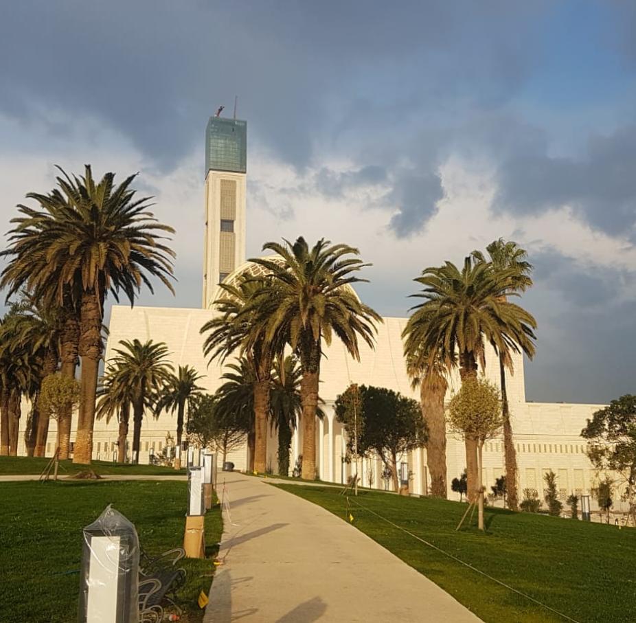 The mosque combines modernity and authentic design Ductal® was chosen for the facades around the minaret, the roofing of the dome of the prayer hall, the inner courtyard and the covering of the other buildings.