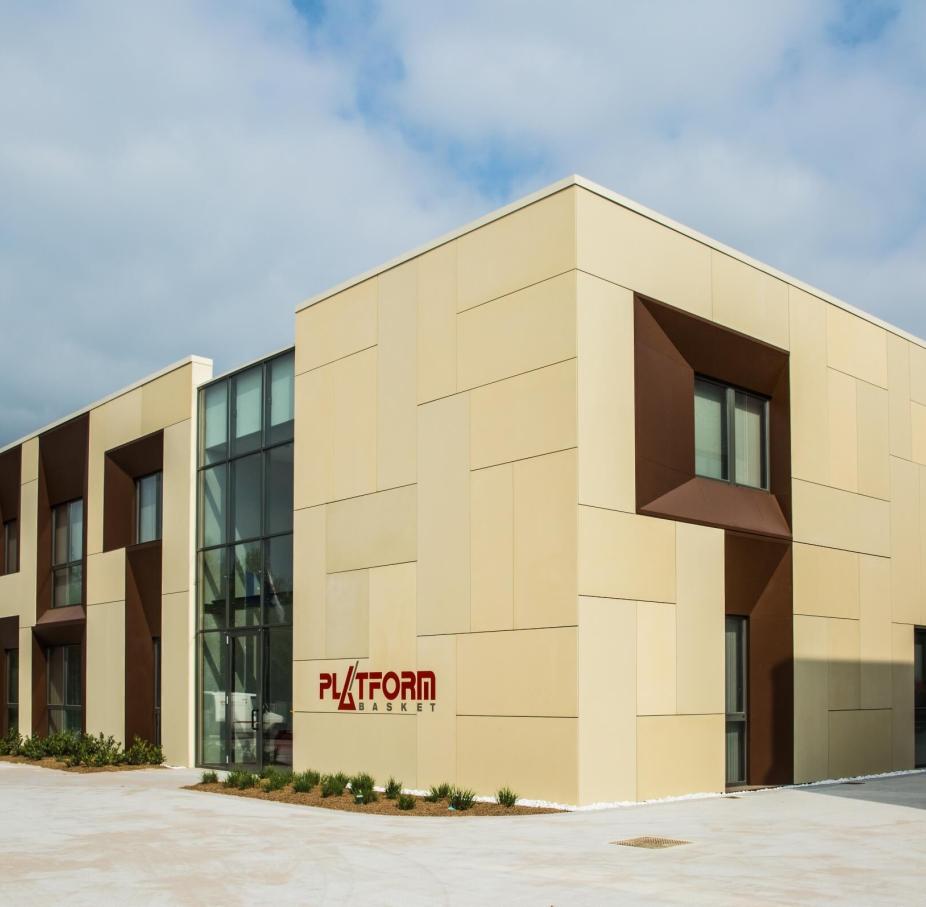 The facade of the new office building housing Platform Basket S.R.L in Poviglio, Italy is decked out in Ductal®.