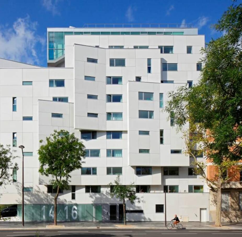 Inaugurated in September 2014, the new Porte de Vanves student residence boasts 67 accommodation units in a bow-shaped building that meets the architectural constraints of a small, triangular building plot.