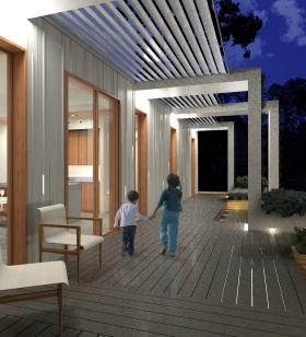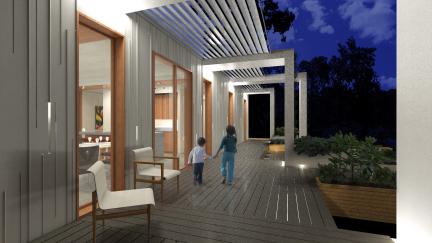 Oversized gutters provide shade and extend the living space outdoors, while a water collection system and vertical planters support hydroponic gardening. The design also demonstrates that concrete is a viable, sustainable building material and a beautiful, highly durable alternative to wood construction. Thanks to its ultra-strong envelope, the home is extremely resilient against fire, moisture, mold, insects, seismic activity and harsh weather conditions.