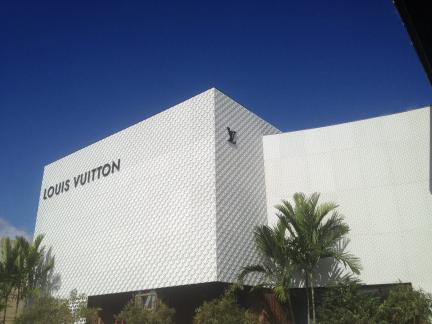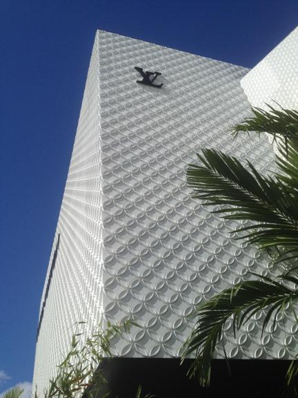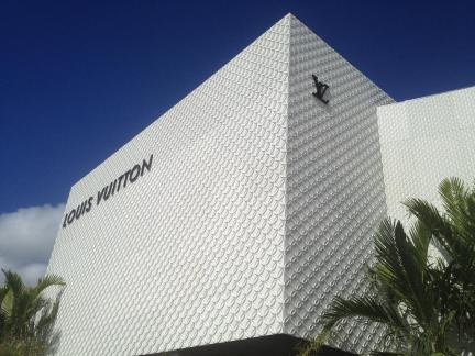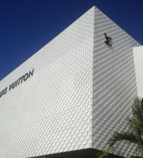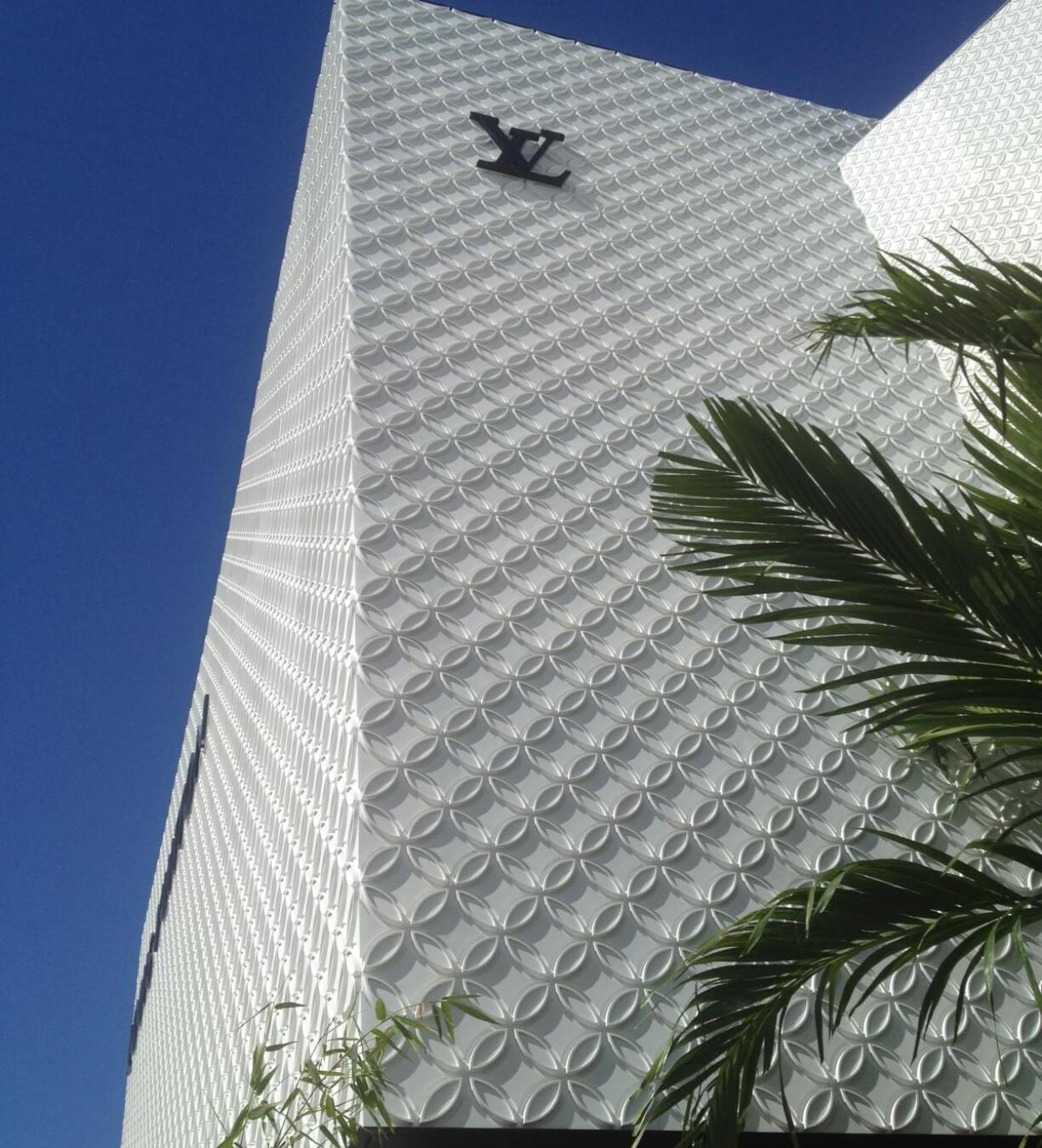 A beautiful façade for the new Louis Vuitton "Maison" store in Miami, Florida has a unique, seamless appearance like a white screen catching the sunlight. This artistic creation was achieved using a combination of flat and curved white Ductal® UHPC panels that are just 25 mm thick and produced in two different patterns to mimic the iconic Louis Vuitton flowers.